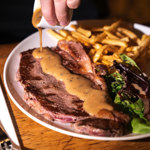Si nos spécialités savoyardes constituent le cœur de notre identité, La Brasserie Savoyarde c’est aussi une carte de brasserie traditionnelle qui ravira tous les gourmets. Amateurs de viandes grillées, vous apprécierez notre faux-filet à la plancha accompagné de sa sauce poivre ou forestière, notre célèbre faux-filet « Café de Paris » nappé de sa sauce secrète, ou encore notre pierrade conviviale aux trois viandes. Les amateurs de classiques français se régaleront avec notre tête de veau traditionnelle sauce gribiche, tandis que les gourmands craqueront pour notre cheeseburger savoyard revisité ou nos tartares de bœuf coupés au couteau.
