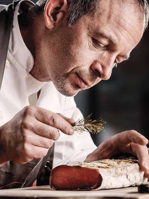 Nos charcuteries proviennent exclusivement de notre partenaire privilégié : la Salaison du Mont Charvin située à Doussard au bord du lac d’Annecy. Cet artisan charcutier réputé perpétue un savoir-faire ancestral et nous fournit des produits de qualité exceptionnelle : jambon sec de Savoie affiné 12 mois, coppa, filet de porc fumé « épicéa », magret de canard séché du Sud-Ouest, bœuf séché « Tavaillon », et notre fameux saucisson aux chanterelles.